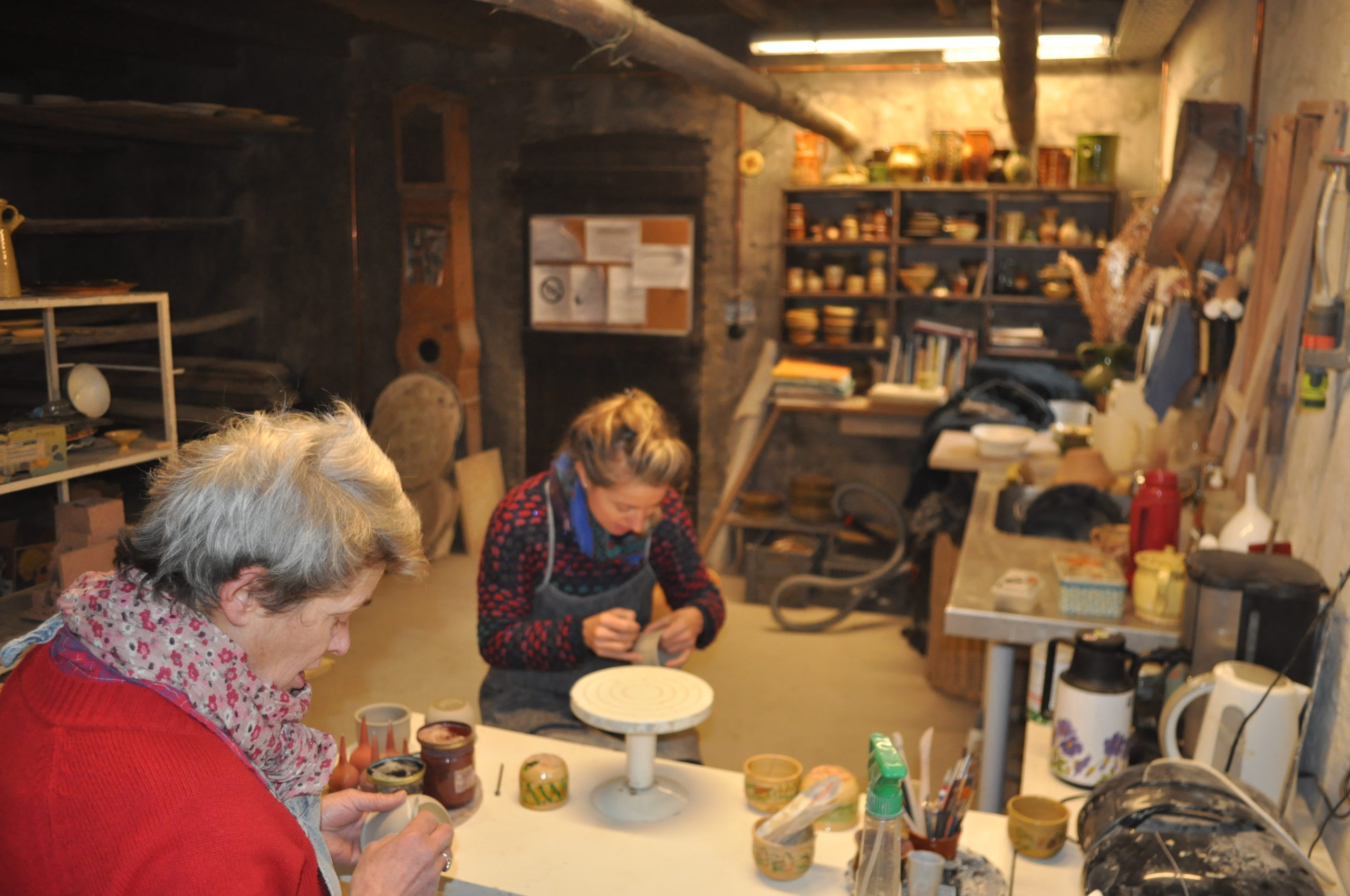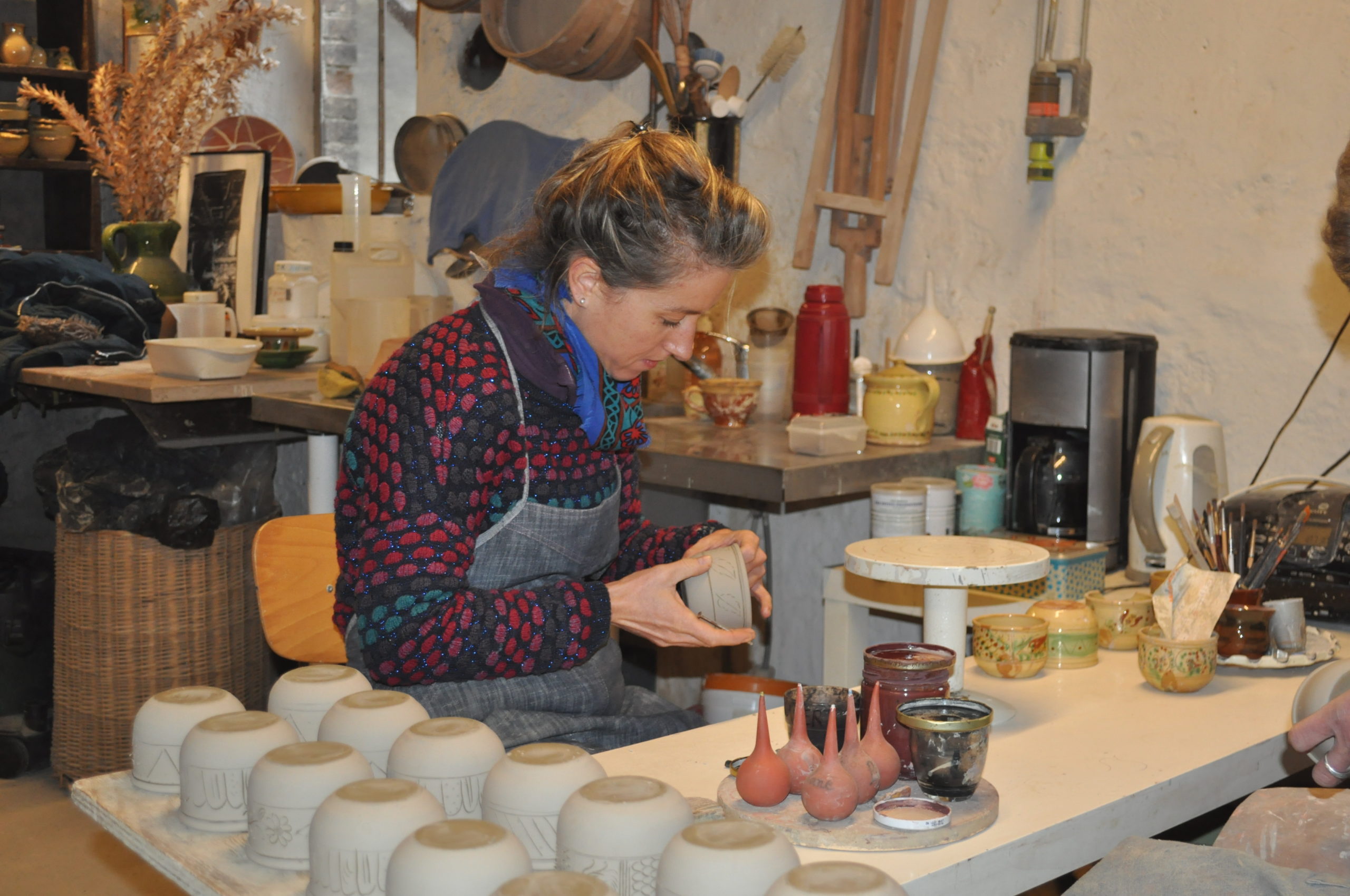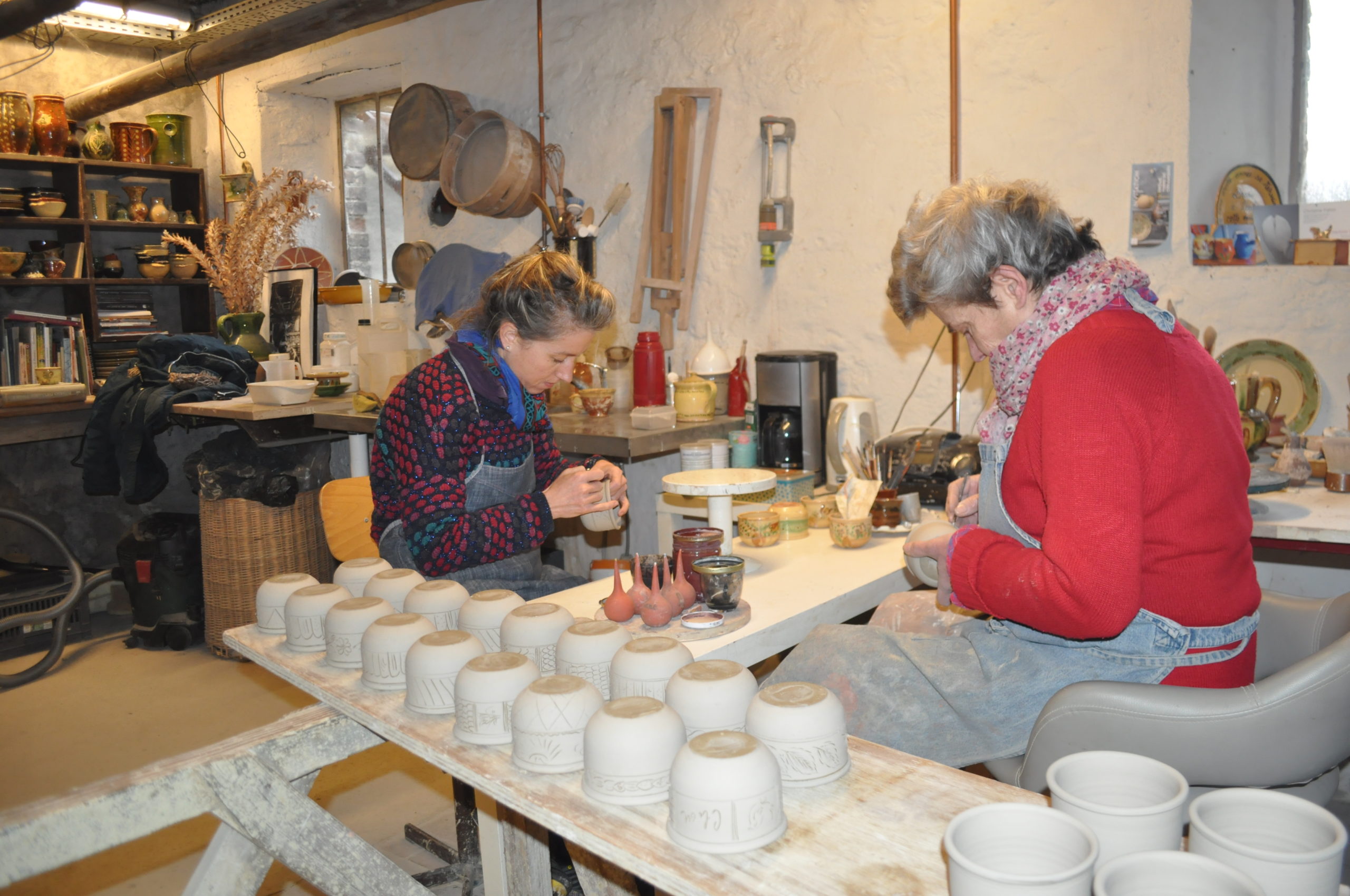 Depuis ce matin, et pour trois jours, Jeanne MORIN, céramiste installée à DIEULEFIT, est venue renforcer l’équipe de la poterie, notamment Isabelle GONTARD, au décor. En vue de la période de NOËL et du Marché du Coin de NOËL, qui se tient le samedi 14 décembre, de 13 heures à 18 heures, nombre de pièces attendent d’être décorées et cuites avant de passer en boutique.