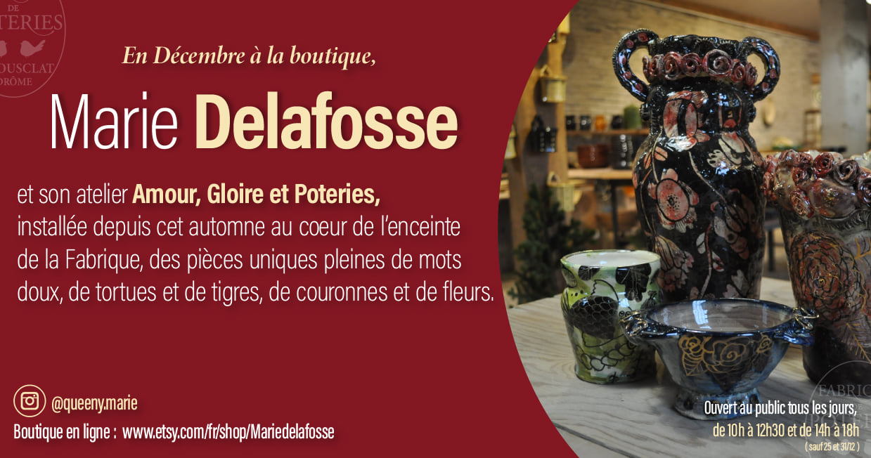 C’est dimanche et c’est aussi tout le mois de décembre. Les poteries de la Fabrique, celles de Jeanne Morin et de Guilhem Bastier, celles de Marie Delafosse, vous attendent dans une boutique nouvellement agencée, aérée, ouverte,… Les mesures sanitaires sont respectées. Et il est bon de profiter de quelques douceurs servies sur place, de parkings disponibles, et de l’attention que tout visiteur mérite,…