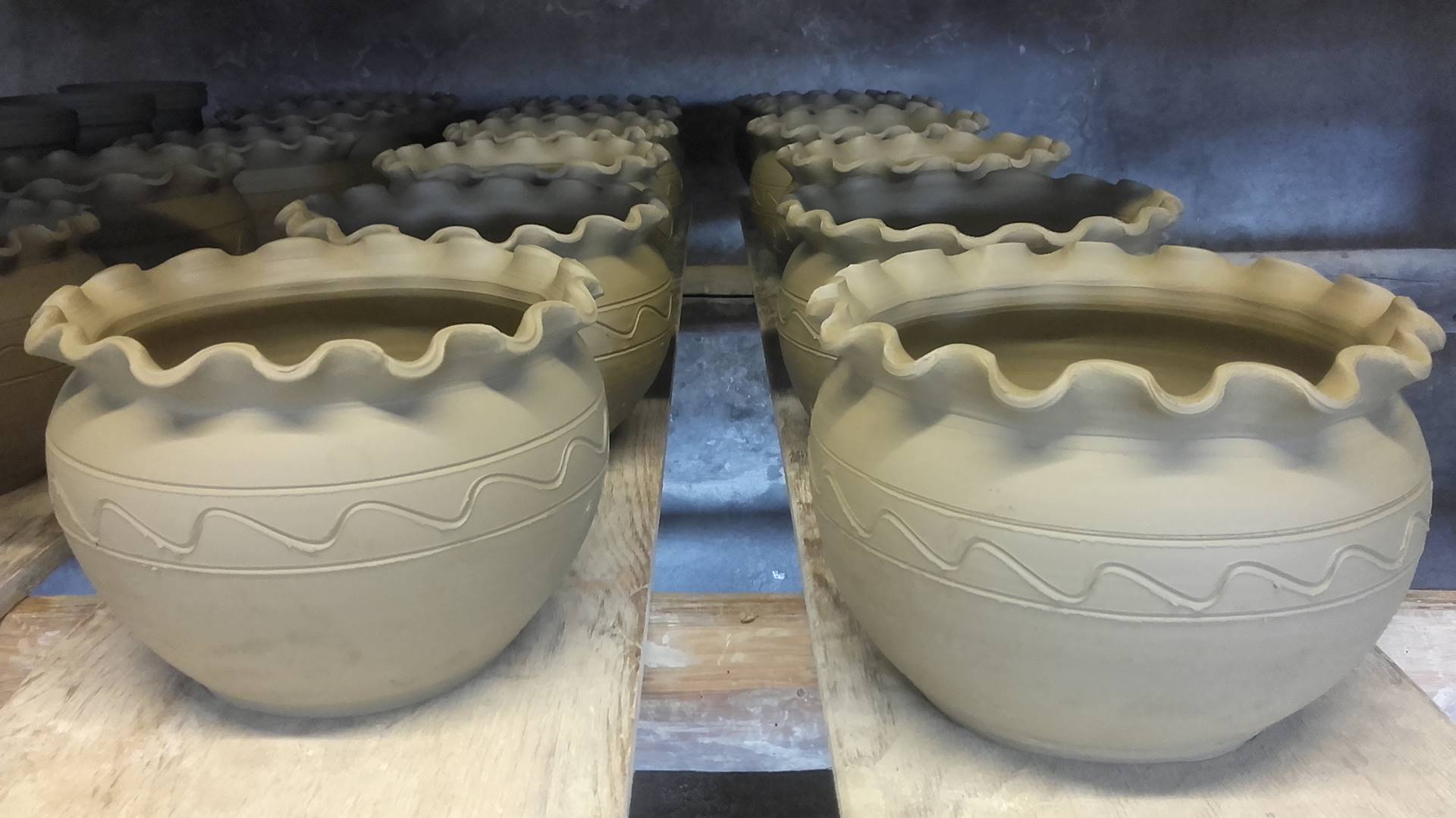 Nous axons aussi notre travail actuel sur la mise en place de l’enclos et son embellissement, par la production de pots de jardin tournés par Guilhem Bastier et Béranger Duterte. Nicolas Roscia, quant à lui, a aussi installé sont tour dans l’atelier et s’attache à produire, avec la terre de Cliou, des « oyas » pour les jardins. C’est une première expérience pour diversifier notre production.