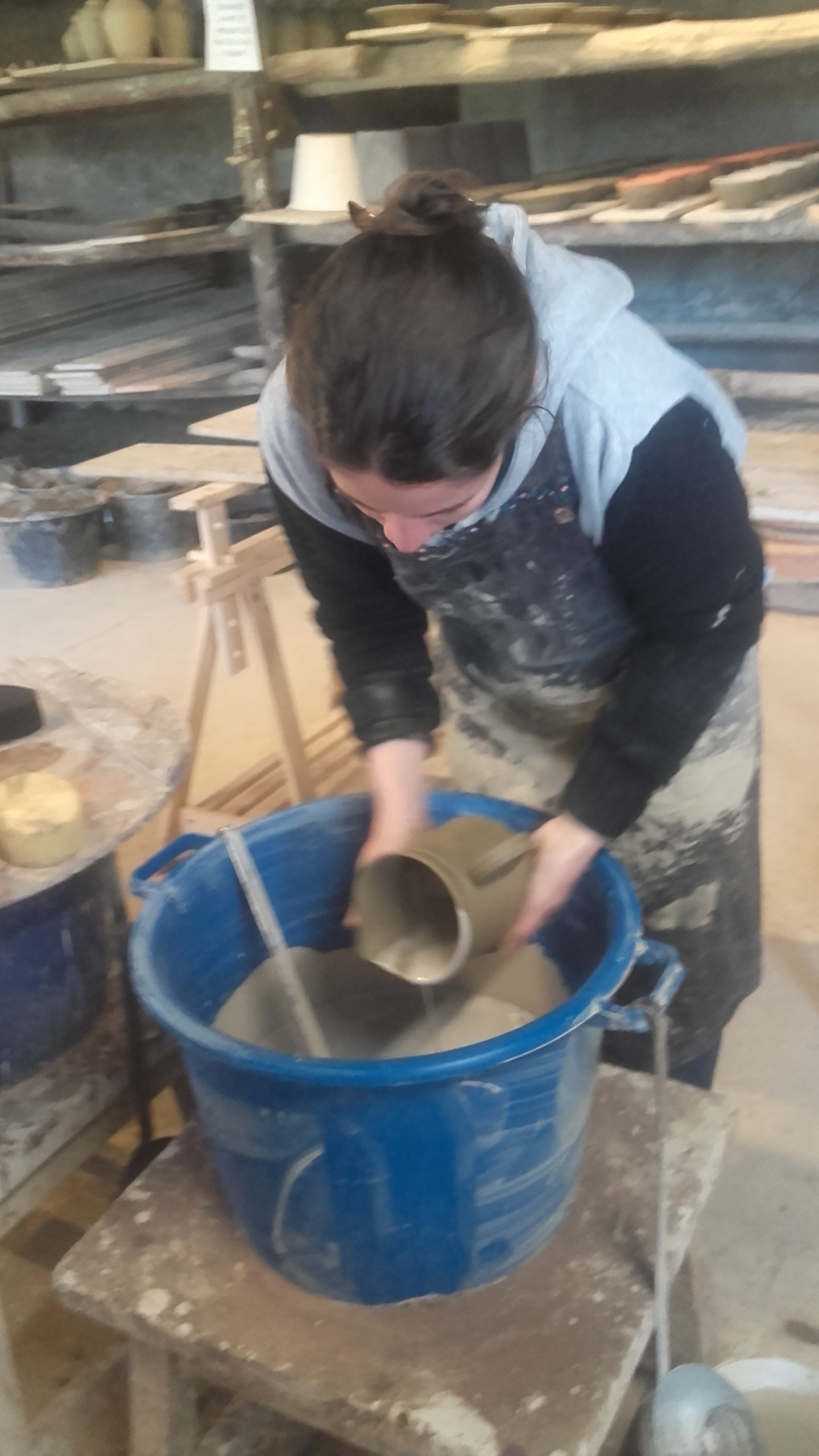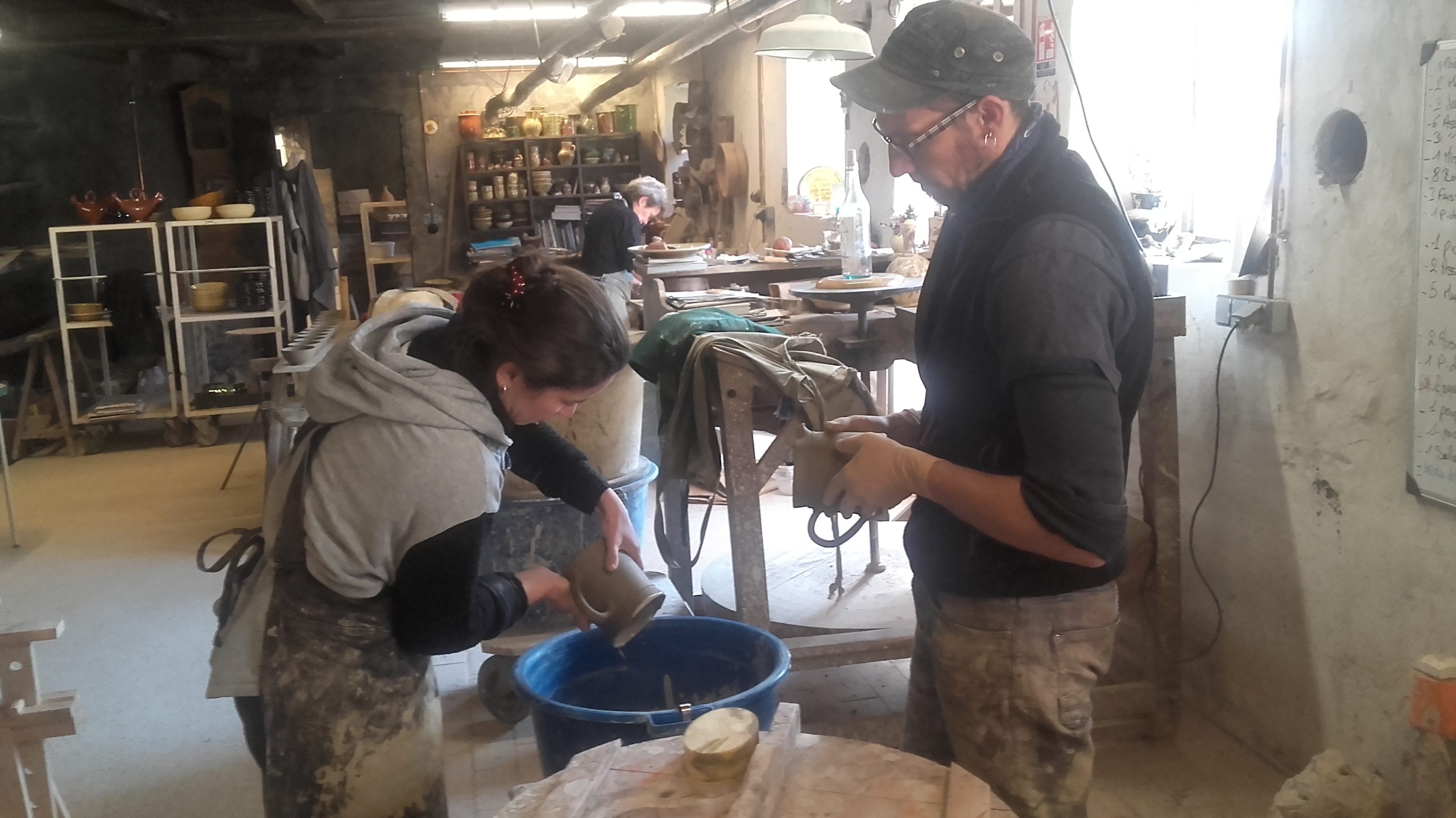 Sous la conduite attentive et bienveillante de Guilhem BASTIER, chef de l’atelier, Roxane effectue cette semaine un stage en situation pratique à la Fabrique de Poteries de CLIOUSCLAT.