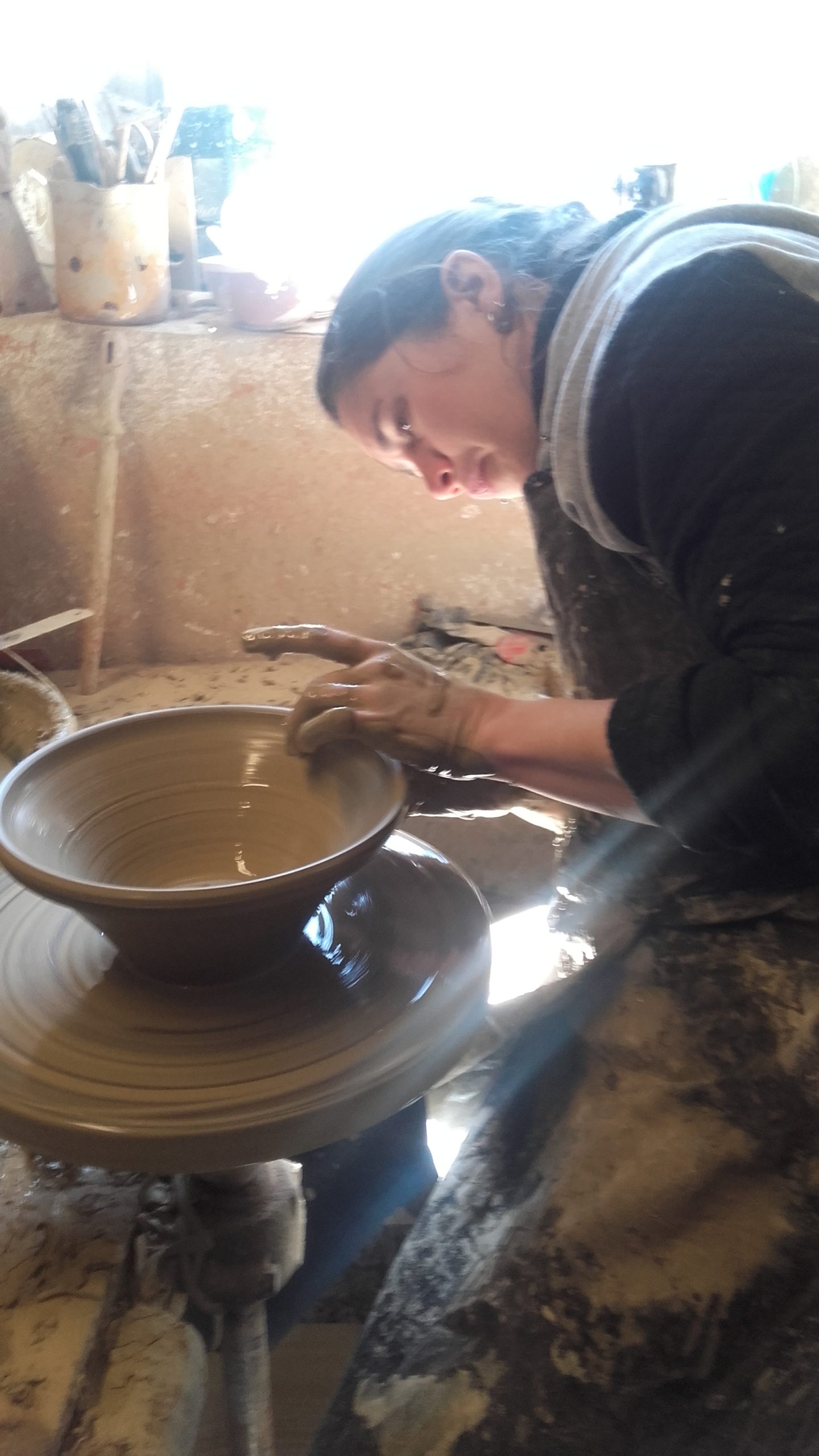 Roxane, après avoir travaillé quelques années sur le documentaire au village de LUSSAS en Ardèche, a entamé une formation de céramiste au CNIFOP de SAINT AMAND EN PUISAYE. C’est dans ce cadre qu’elle découvre le travail si particulier sur les tours centenaires de la Fabrique.