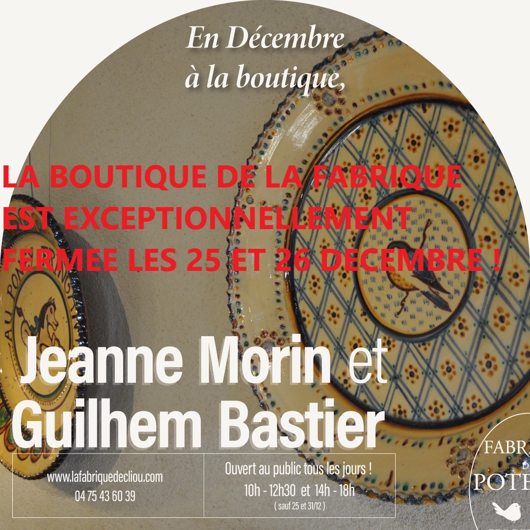 Fermeture exceptionnelle de la boutique les 25 et 26 décembre. Ouverte les autres jours aux heures habituelles !