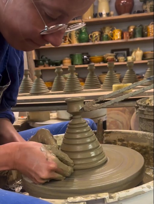 Les bougeoirs en poterie, allant d’un à sept emplacements, sont façonnés avec soin à la main et au tour. Chaque pièce naît d’une boule d’argile modelée, évidée et décorée selon l’inspiration du moment. Après le séchage, les bougeoirs sont cuits, émaillés puis recuits pour révéler leurs couleurs et leurs reflets uniques. Leur forme douce et leurs teintes chaleureuses évoquent la tradition artisanale de Cliousclat. Allumés, ils diffusent une lumière tamisée qui apporte une touche romantique et apaisante à notre environnement.