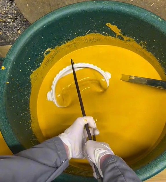 Cet émail est un mélange de minéraux réduits en poudre, dilués dans de l’eau.